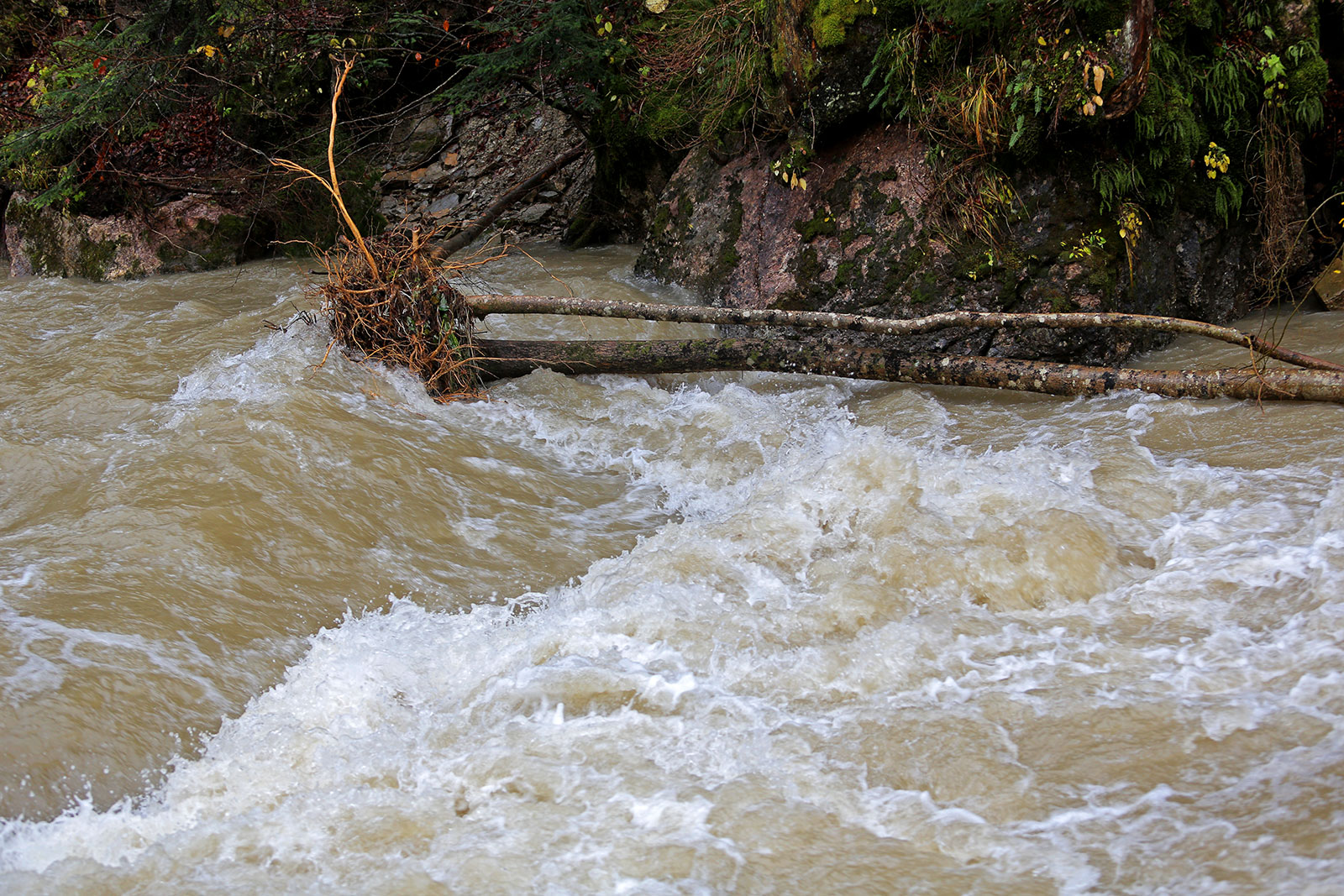 - Ne poskušajte prečkati vodnega toka, tudi če vam voda sega le do kolen. Vodni tok vas lahko spodnese. Ker je voda motna in onesnažena, ne vidite tal in morebitnih lukenj (npr. dvignjen pokrov kanalizacijskega jaška).
