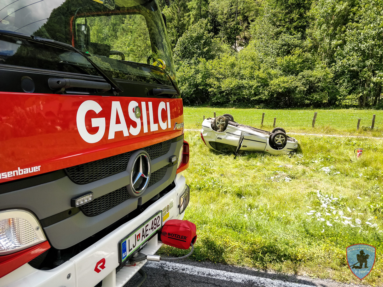 V petek, 27. julija 2018, smo bili ob 11:18 obveščeni o prometni nesreči na cesti proti Ljubelju. Na kraj smo odšli z GVC 16/25-T, kjer smo skupaj z gasilci JZ GRS Kranj požarno in naletno zavarovali mesto nesreče, odklopili akumulator in vozilo postavili na kolesa. Reševalcem NMP Tržič smo pomagali pri oskrbi in prenosu poškodovane osebe do reševalnega vozila.