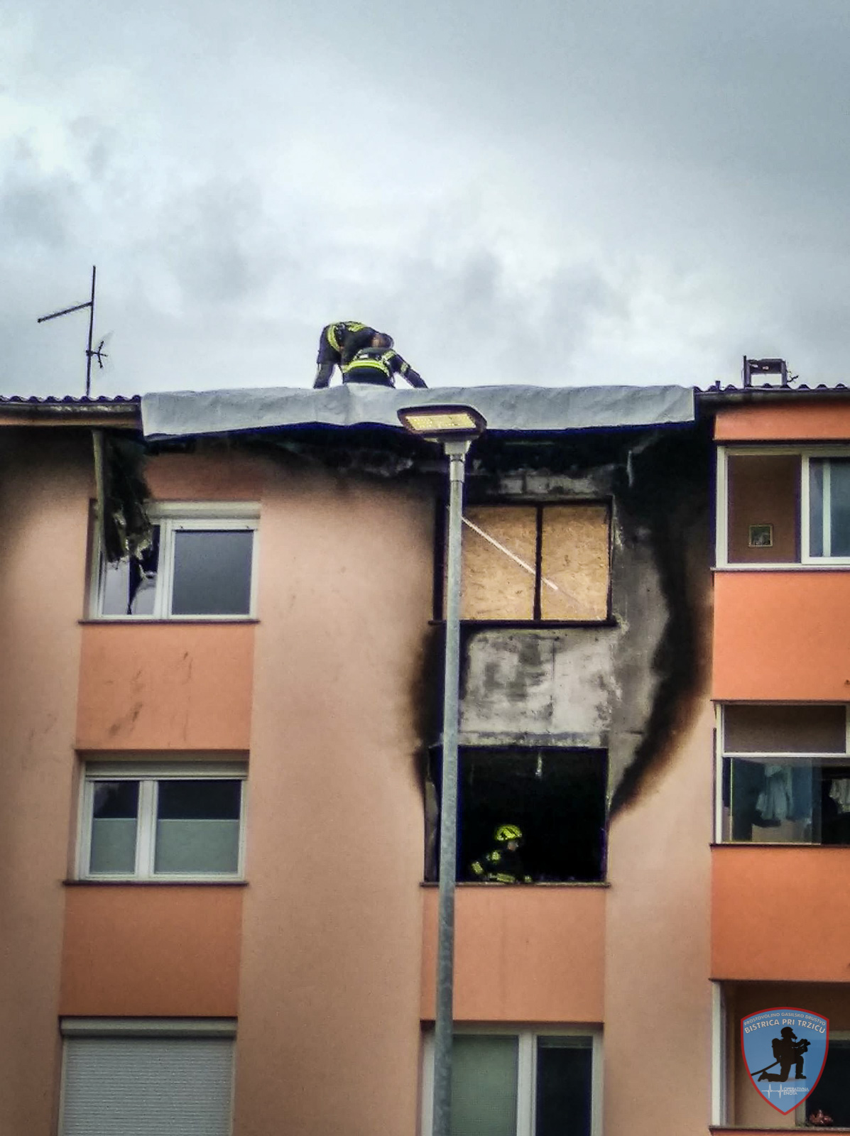 Ob 9:25, ko so kriminalisti končali s preiskavo smo pričeli z nujnimi interventnimi deli, da se je večina stanovalcev lahko vrnila v svoja stanovanja. Gasilci smo na prosto iznosili pogorele stvari iz stanovanja, s ponjavo prekrili del poškodovane strehe. Na RK Tržič smo dobili nekaj razvlaževalcev, ki smo jih dostavili v stanovanja, kjer je bilo nekaj vode.