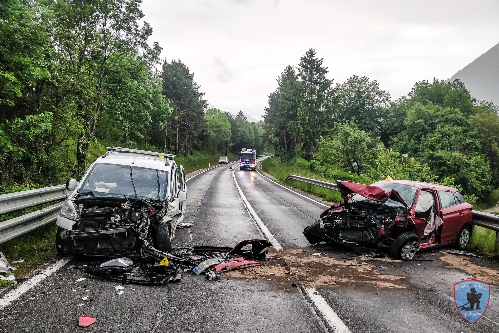 V nedeljo, 26. maja 2019, ob 17.56 smo bili obveščeni o prometni nesreči na glavni cesti Tržič – Podbrezje. Izvozili smo z GVC 16/25-T ter skupaj z gasilci GARS Kranj naletno in požarno zavarovali kraj nesreče, s tehničnim posegom rešili ukleščeno osebo, pomagali reševalcem pri oskrbi in prenosu ponesrečencev v reševalno vozilo, posuli razlite motorne tekočine in pomagali pri nakladanju poškodovanih vozil na avtovleko.