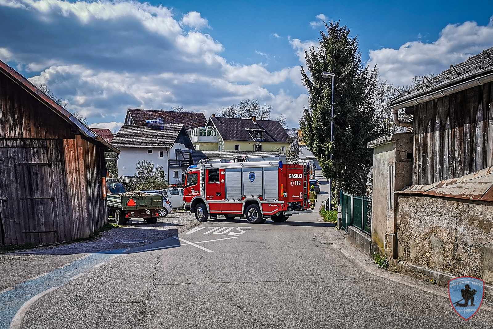 V sredo, 1. aprila 2020, smo bili ob 11:09 obveščeni, da na Glavni cesti v Kovorju smrdi po plinu. Izvozili smo z GVC 16/25-T in na kraju skupaj z gasilci GARS Kranj pregledali okolico in opravili meritve z detektorjem po jašku ter ob omaricah plinskih pip. Prisotnosti plina nismo zaznali, ugotovili pa smo, da se vonj širi s sosednjega dvorišča, kjer je občan v traktorskem priključku menjal hidravlično olje, ki je oddajalo tak vonj. Dogovorili smo se, da občan zadevo pospravi, mi pa smo čez eno uro ponovno opravili ogled in vonja nismo več zaznali.