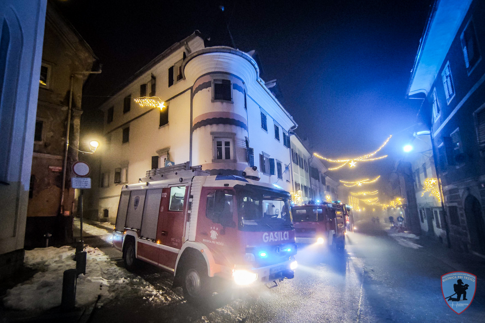 V nedeljo, 3. januarja 2021, smo bili ob 23:20 obveščeni o dimu v stanovanjskem objektu v Tržiču. Na kraj smo odšli z GVC 16/25-T in GVC 24/50, kjer smo skupaj s PGD Tržič in PGD Križe preventivno iznosili goreč material iz peči na trda goriva, očistili dimnik, pregledali okolico dimniške tuljave ter do dimnikarskega pregleda odsvetovali kurjenje.