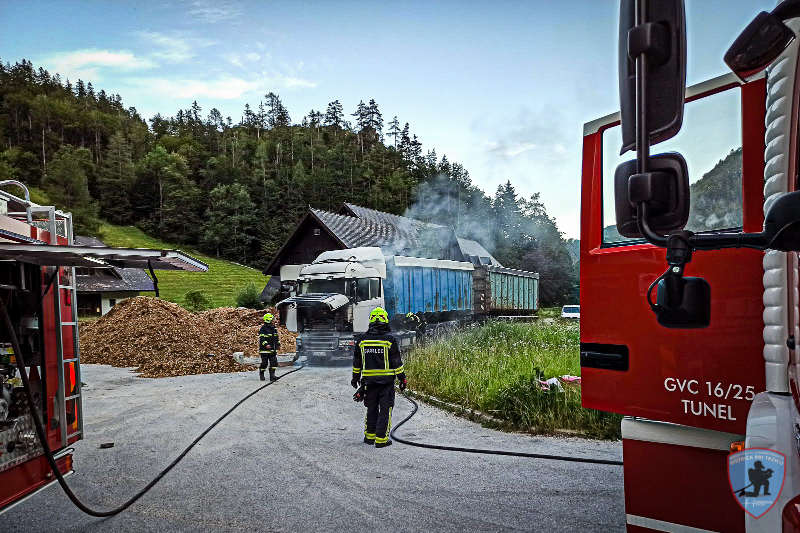 V torek, 6. julija 2021, smo bili ob 19:44 obveščeni, da v Podljubelju pri bivšem TGT gori tovorno vozilo. Izvozili smo z GVC 16/25-T, GVC 24/50 in GVM-1 ter na kraju skupaj z gasilci PGD Podljubelj in GARS Kranj pogasili požar na kabini vozila, odklopili akumulatorje in vozilo pregledali s termokamero.