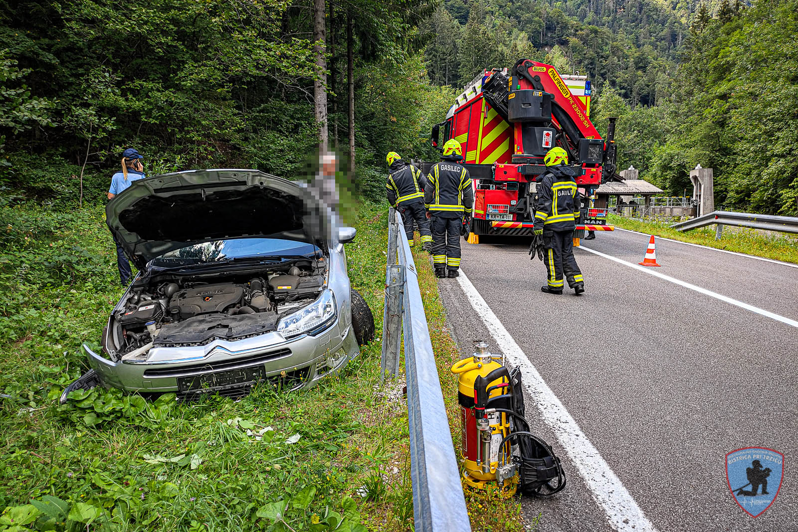 V sredo, 10. avgusta 2022, smo bili ob 14:04 obveščeni o prometni nesreči na hitri cesti Tržič – Podljubelj. Na kraj smo odšli z GVM-1 in GVC 16/25-T ter na kraju skupaj z gasilci GARS Kranj zavarovali kraj nesreče, s tehničnim posegom vozilo postavili na cesto in nato na vozilo vlečne službe. Na vozilu smo odklopili akumulator in sanirali iztekle tekočine. Prav tako smo pomagali pri usmerjanju prometa.