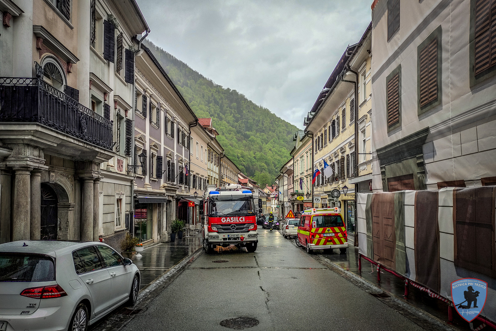 V torek, 2. maja 2023, smo bili ob 9:39 obveščeni, da se v večstanovanjski stavbi na Trgu svobode voha plin. Na kraj smo odšli z GVM-1 in GVC 16/25-T ter skupaj z gasilci GARS Kranj preventivno evakuirali stanovalce ter pričeli z iskanjem vzroka za smrad po objektu. Vzrok za vonje po plinu je bila tleča plastična posoda, ki je bila na prižganem štedilniku v enem od stanovanj. Objekt smo prezračili ter pomerili prisotnost plinov.