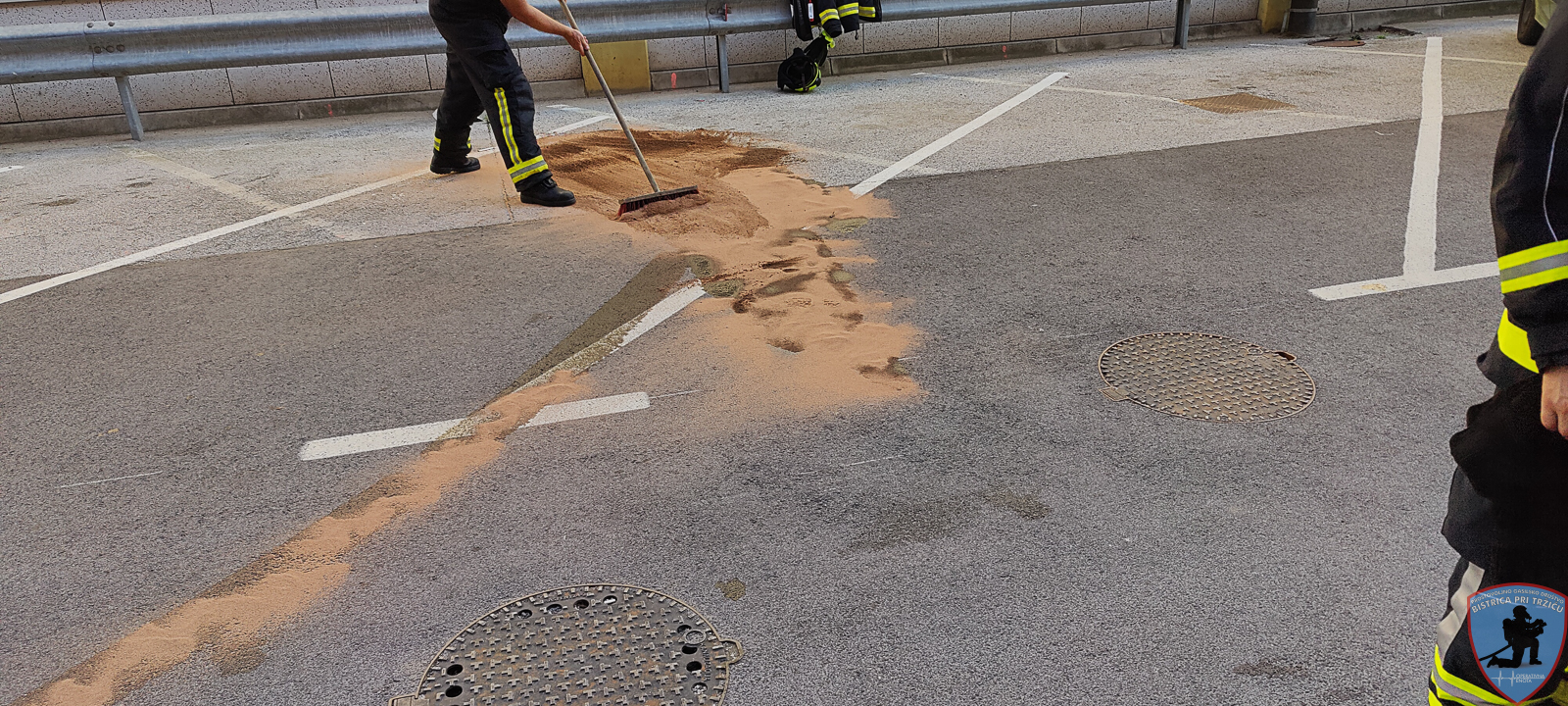 V petek, 7.7.2023, smo bili malo pred 18h obveščeni, da je prišlo do razlitja motornega olja iz avtomobila na parkirišču pred trgovino v Tržiču.
