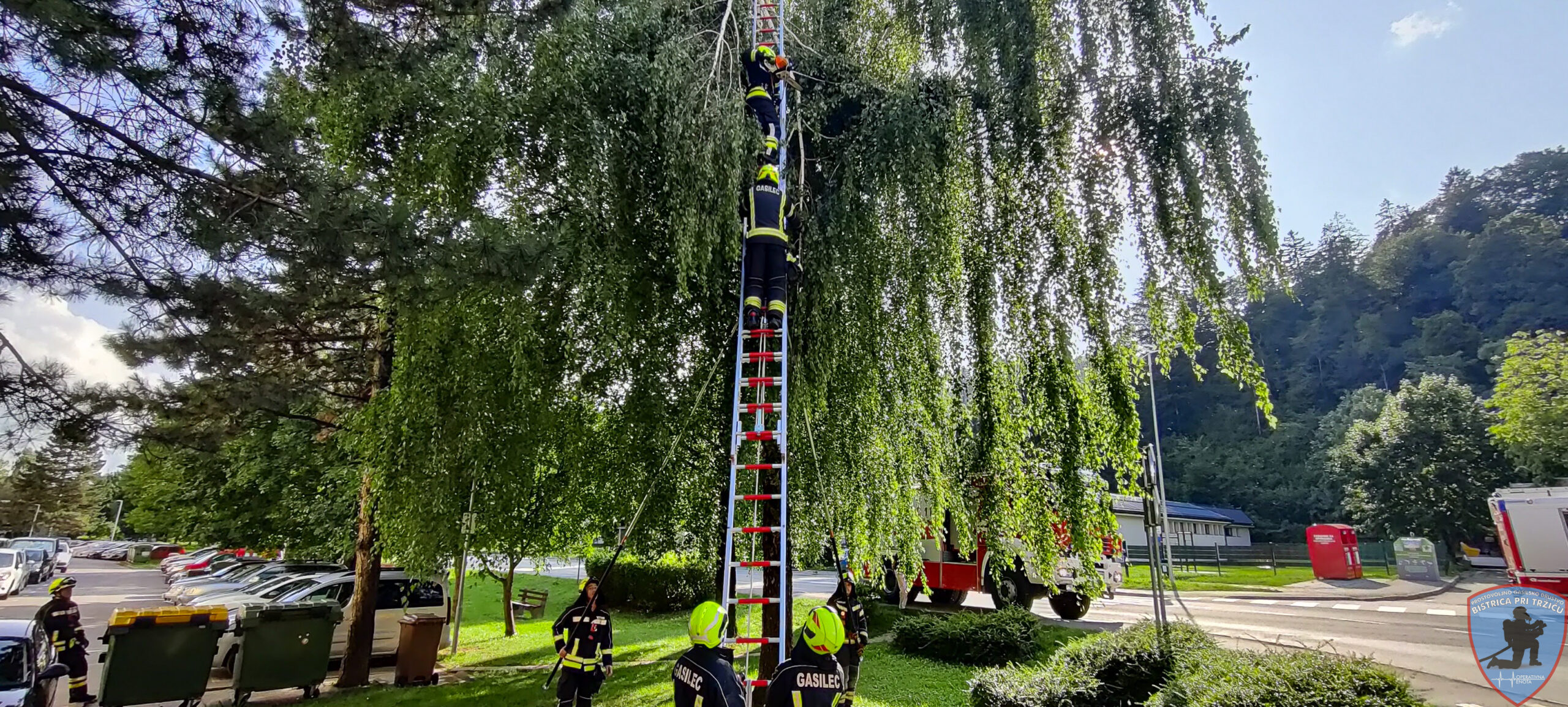 Na kraj smo izvozili z vozilom GVC 16/25T in GVC 24/50. S pomočjo lestve in motorne žage smo večjo vejo, ki je ogrožala mimoidoče in otroke na travniku pred bloki odžagali in odstranili.