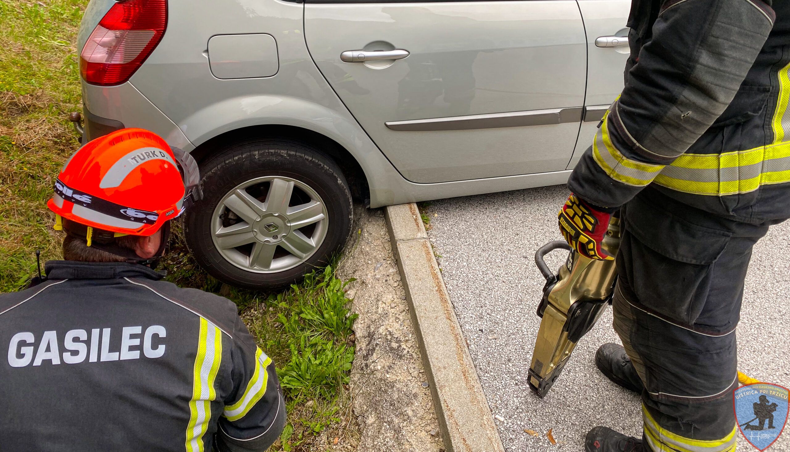 V ponedeljek 24.7.2023 ob 16:05 smo bili obveščeni, da je voznik na Blejski cesti v Tržiču z osebnim vozilom zapeljal čez robnik in nasedel.