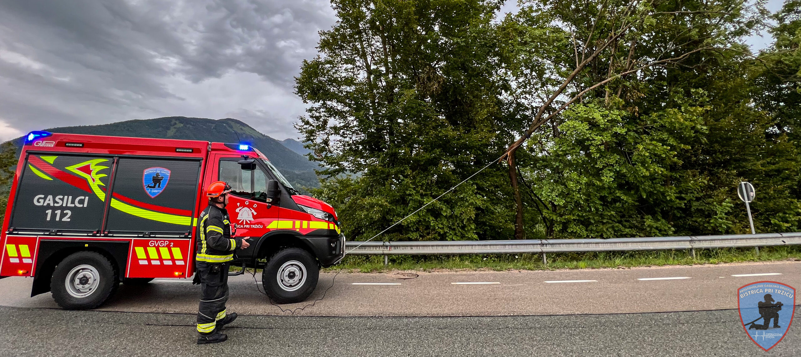Na kraj smo se odpravili z vozilom HTRV ter GVGP-2. Po ogledu kraja smo odlomljeni del drevesa s pomočjo vitla potegnili na cesto, ga razžagali ter umaknili z vozišča.