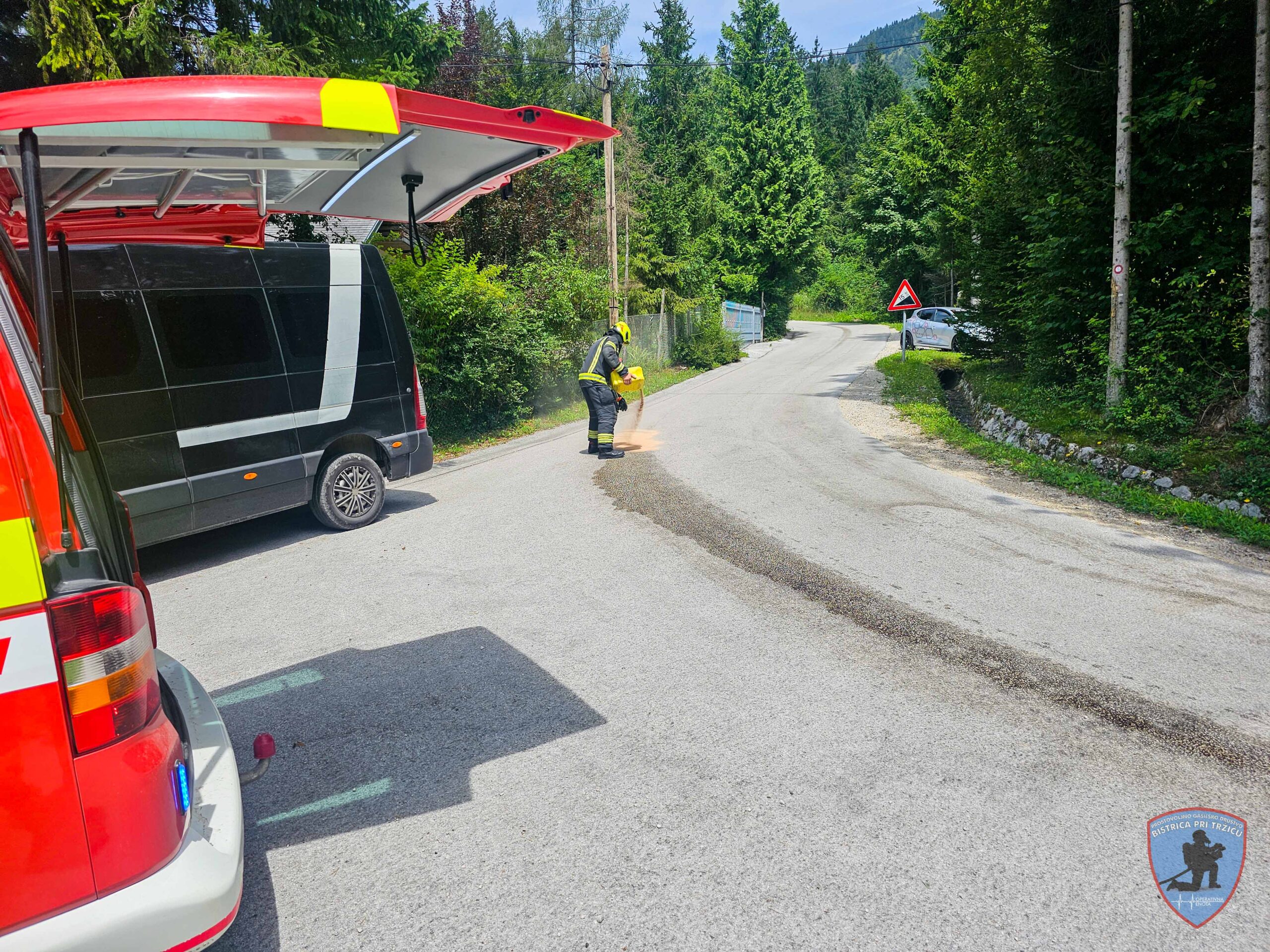 V ponedeljek, 5.8.2024, smo bili ob 12:45 obveščeni, da na cesti med Zgornjim Vetrnim in Gozdom iz vozila izteka gorivo.
