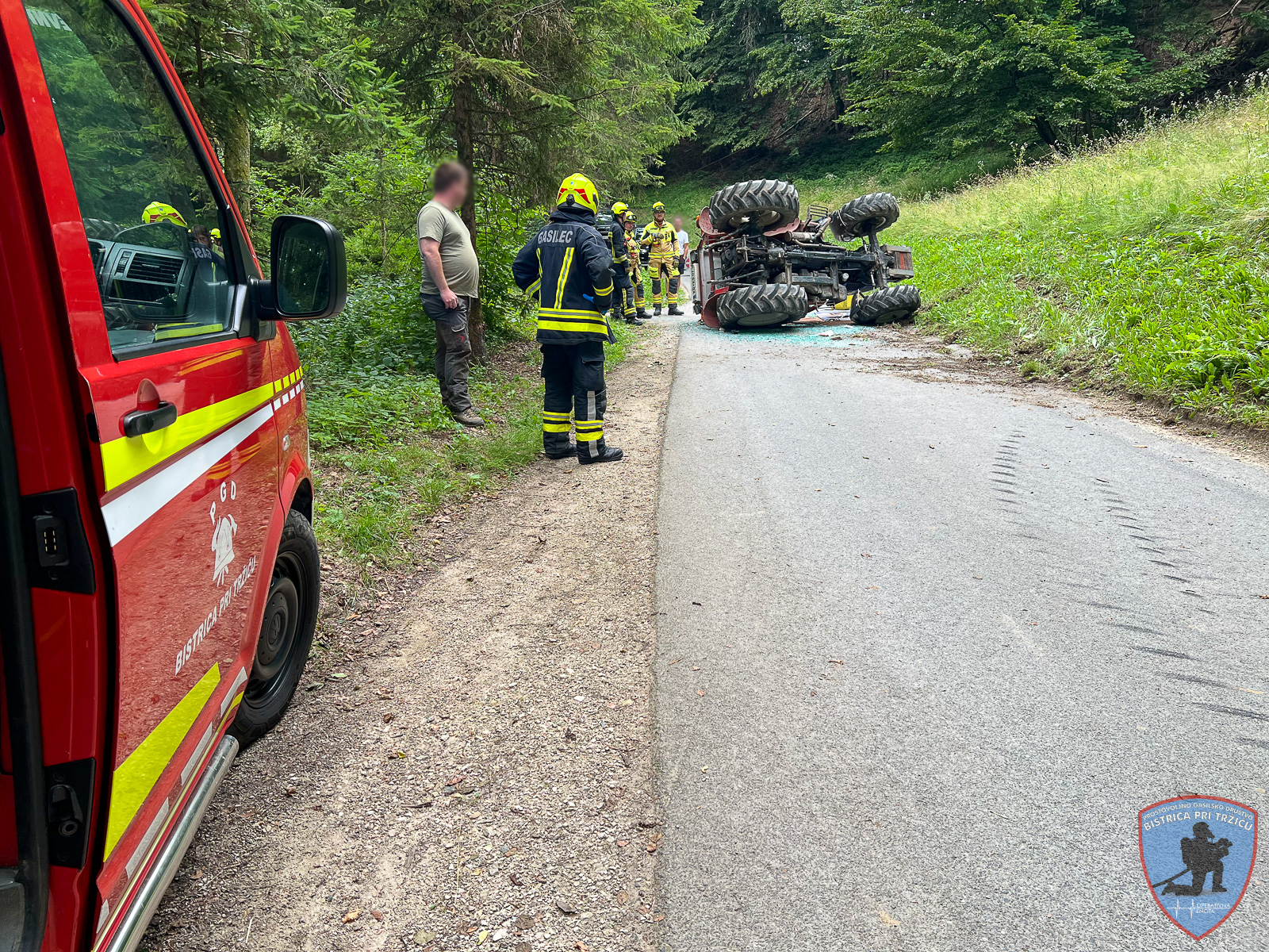 V petek, 11.7.2025, smo bili ob 12:52 obveščeni o prometni nesreči traktorja na cesti proti Brdu.