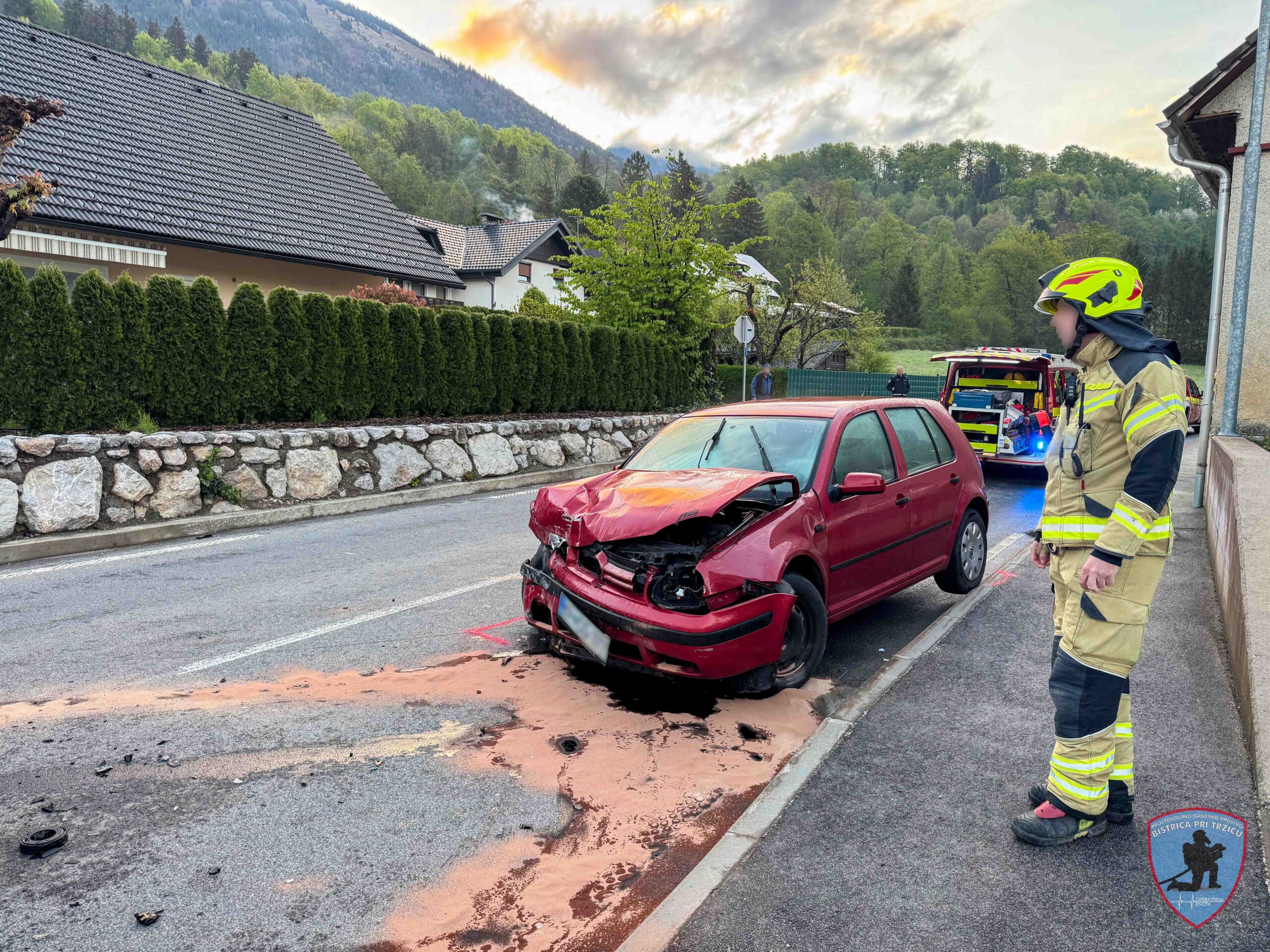 Izvozili smo z voziloma HTRV in GVC 16/25T. Na kraju smo skupaj z gasilci GARS Kranj naletno in požarno zavarovali območje, odklopili akumulator, posuli razlite tekočine, nudili pomoč reševalcem pri oskrbi poškodovane osebe, nudili pomoč policiji pri usmerjanju prometa ter vlečni službi pri natovarjanju vozila.